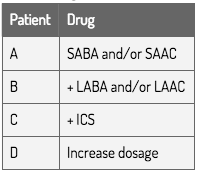 Pharmacological management of COPD (according to ABCD severity groups)