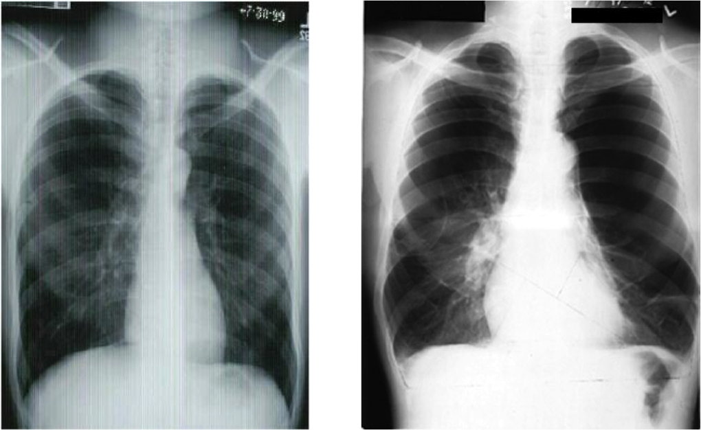 Left - Bronchitis, note: darker is more air
