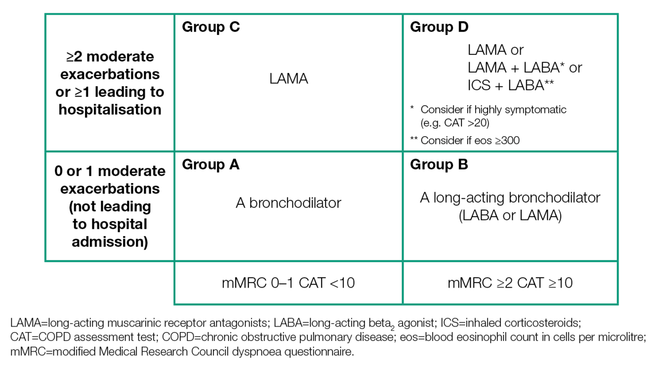 They can also be put into groups according to the number of exacerbations, according to CAT scale: