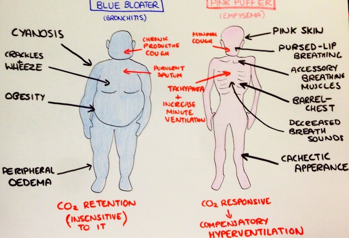 What are the signs/symptoms which would suggest more of a chronic bronchitis or emphysema aspect to someone’s COPD?