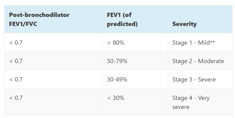How is the severity of COPD graded?