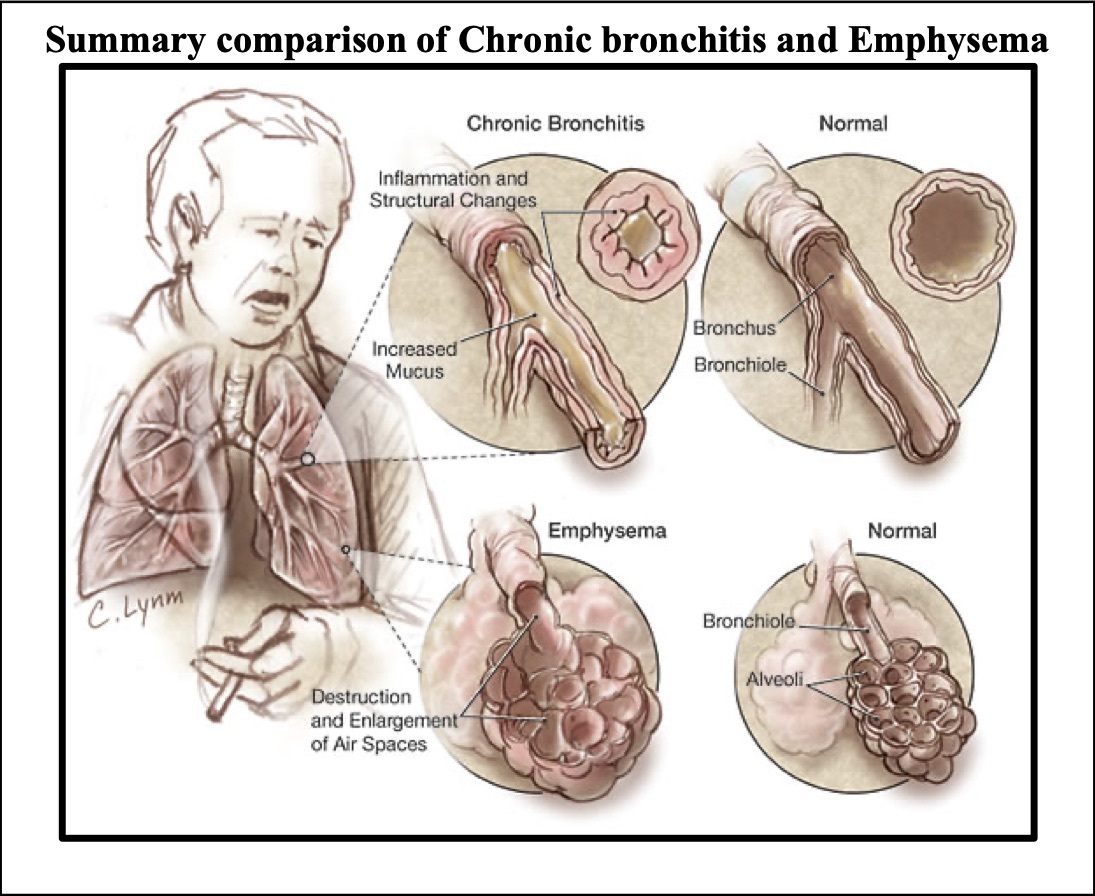Morphologically defined disease with enlargement of air spaces due to destruction of alveolar septae.