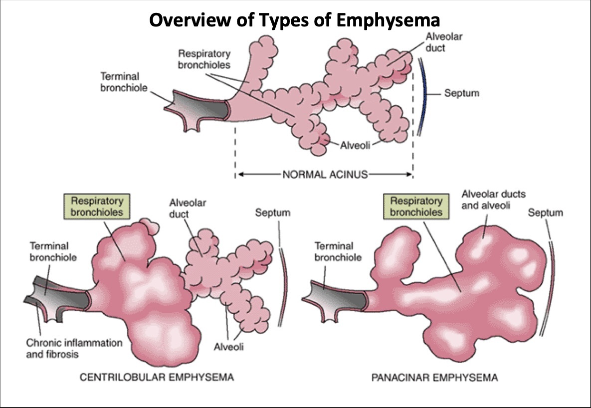 Permanent and abnormal enlargement of terminal respiratory unit of acinus.