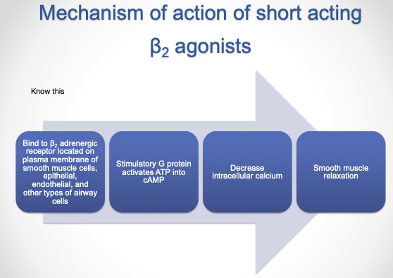 What is the mechanism of action of short acting Beta 2 agonists?