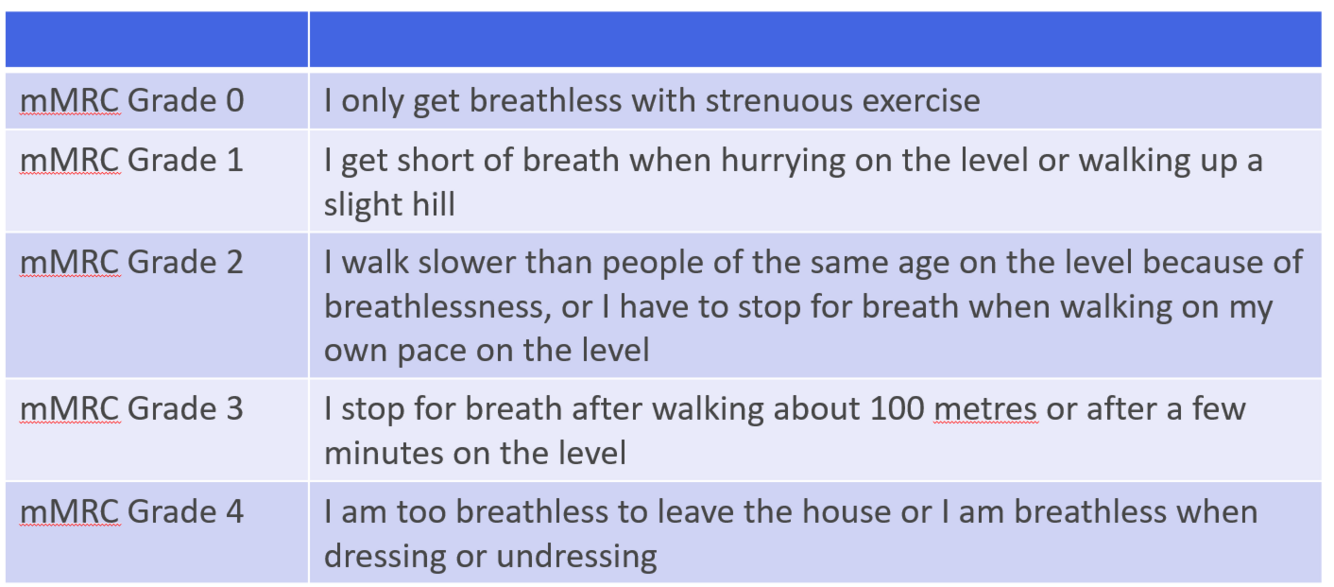 This is carrier out after COPD indicated bronchodialtor spirometry, nMRC scale, CAT (CAT is a subjective self-questionaire)