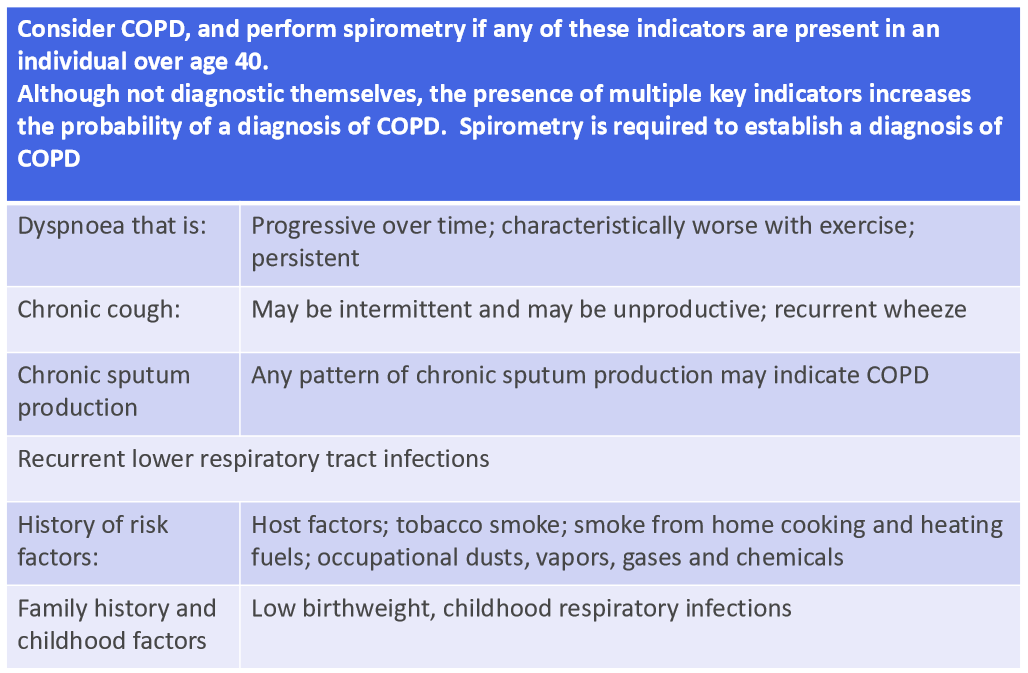 -symptoms are not COPD specific – relevant differential diagnoses should be considered