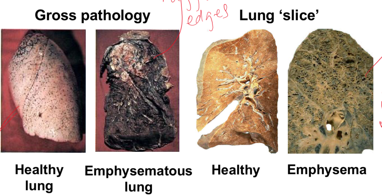 disrupted alveolar attachments (emphysema)