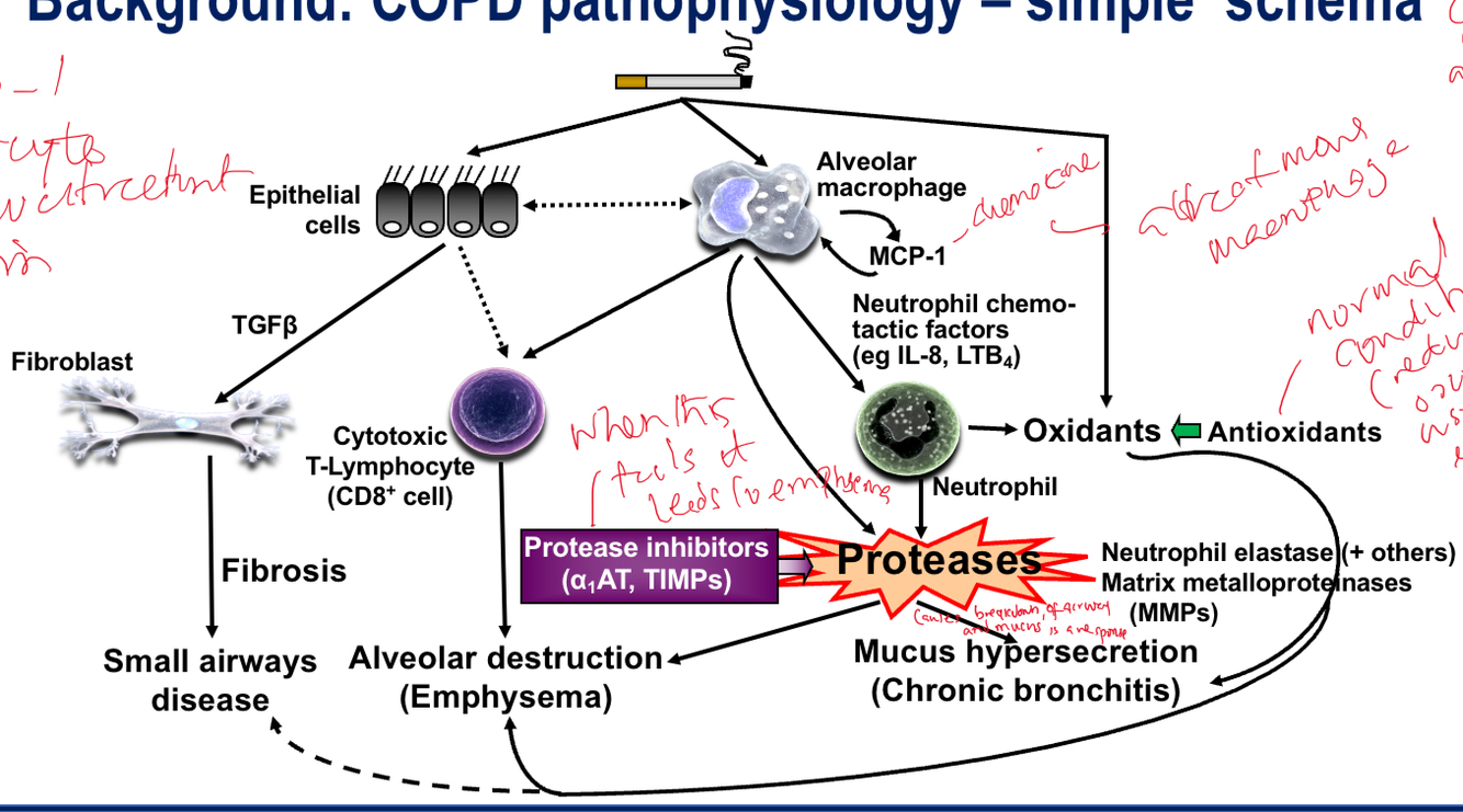 Describe the pathophysiology of COPD