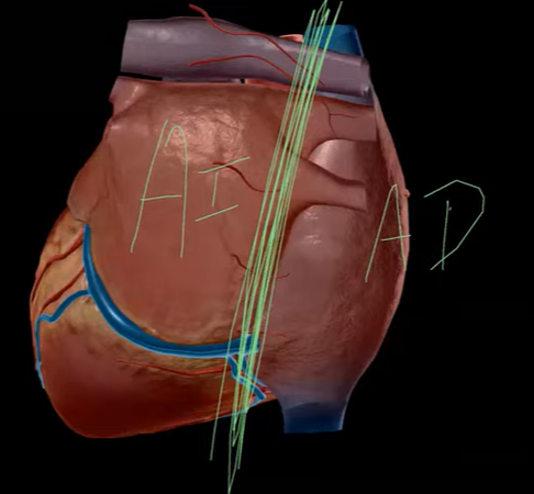 5- vena seno coranario (medialmente)