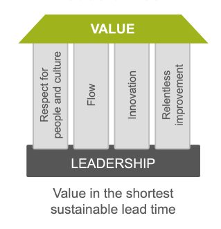 the SAFe House of Lean illustrates the goal of delivering value through the pillars of respect for people and culture, flow, innovation, and relentless improvement. Leadership provides the foundation on which everything else stands.