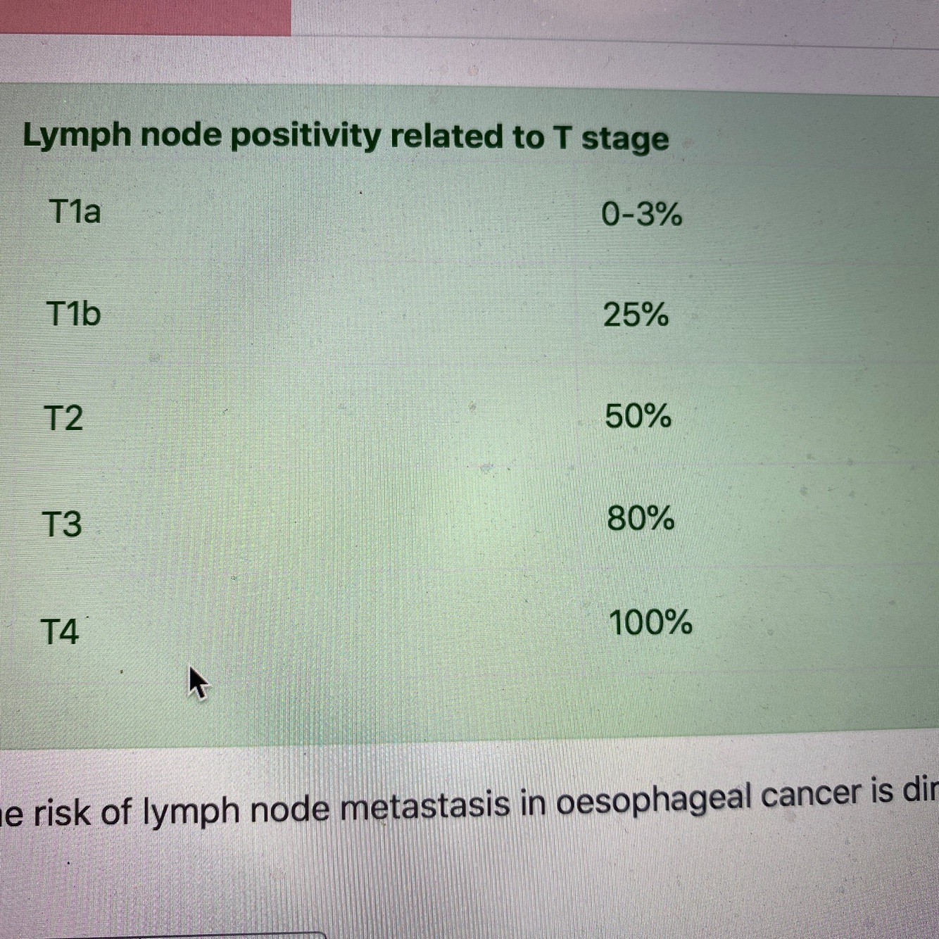 Oesophageal cancer staging and lymph nodes