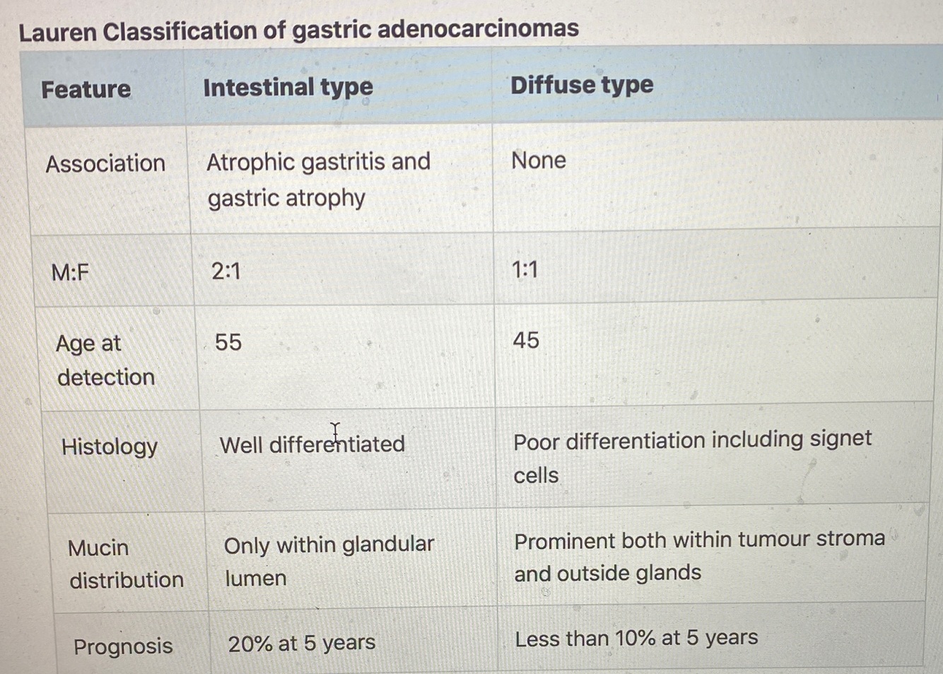 Lauren classification of gastric adenocarcinima
