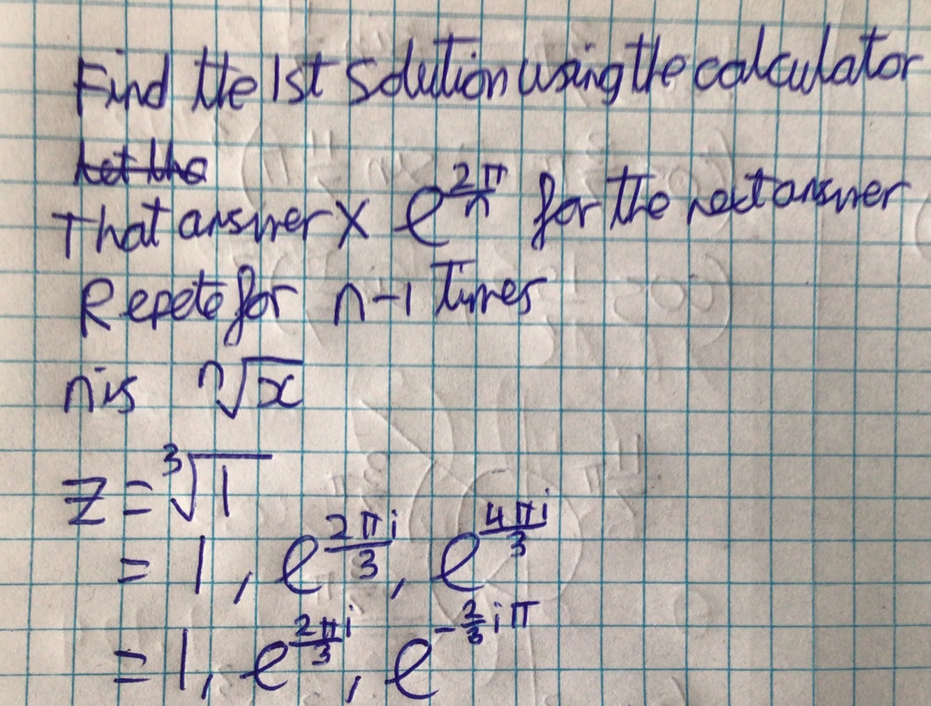 All roots will be (2π)/n spaced apart)
