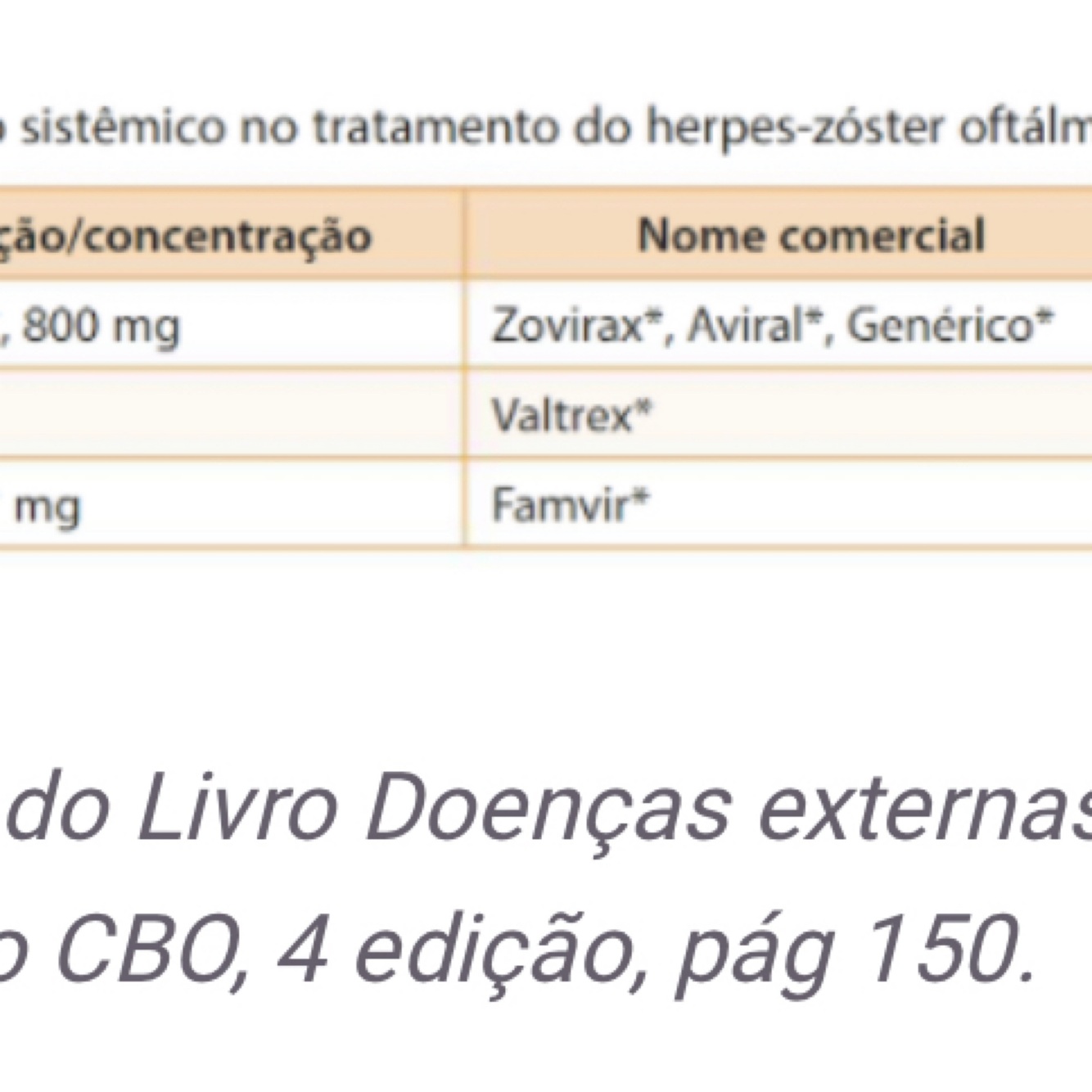 lembrando que para o Zoster Oftálmico a dose é dobrada com valor correto de 800 mg 5x/dia.