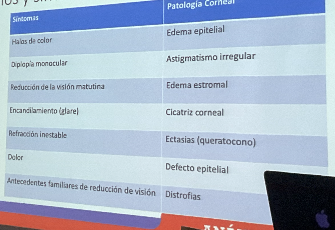 Patoneumonico la baja vision durante el dia en el edema estromal