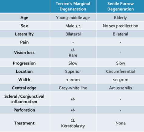 Note the difference between Terrien’s vs. Senile Furrow Degeneration