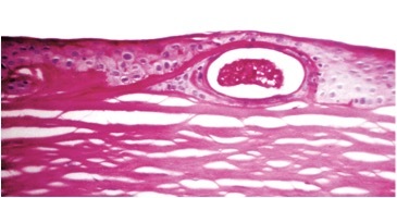 rare - intraepithelial cysts (6 months) = abnormal basal cells and maturation to squamous, thick BM