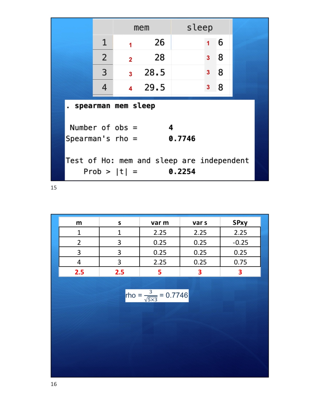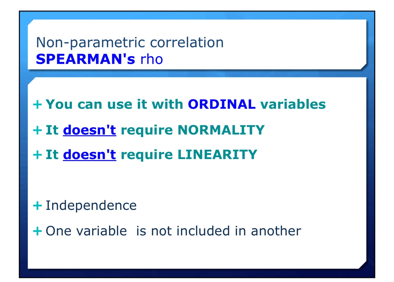 Non-parametric correlation - SPEARMAN’s rho