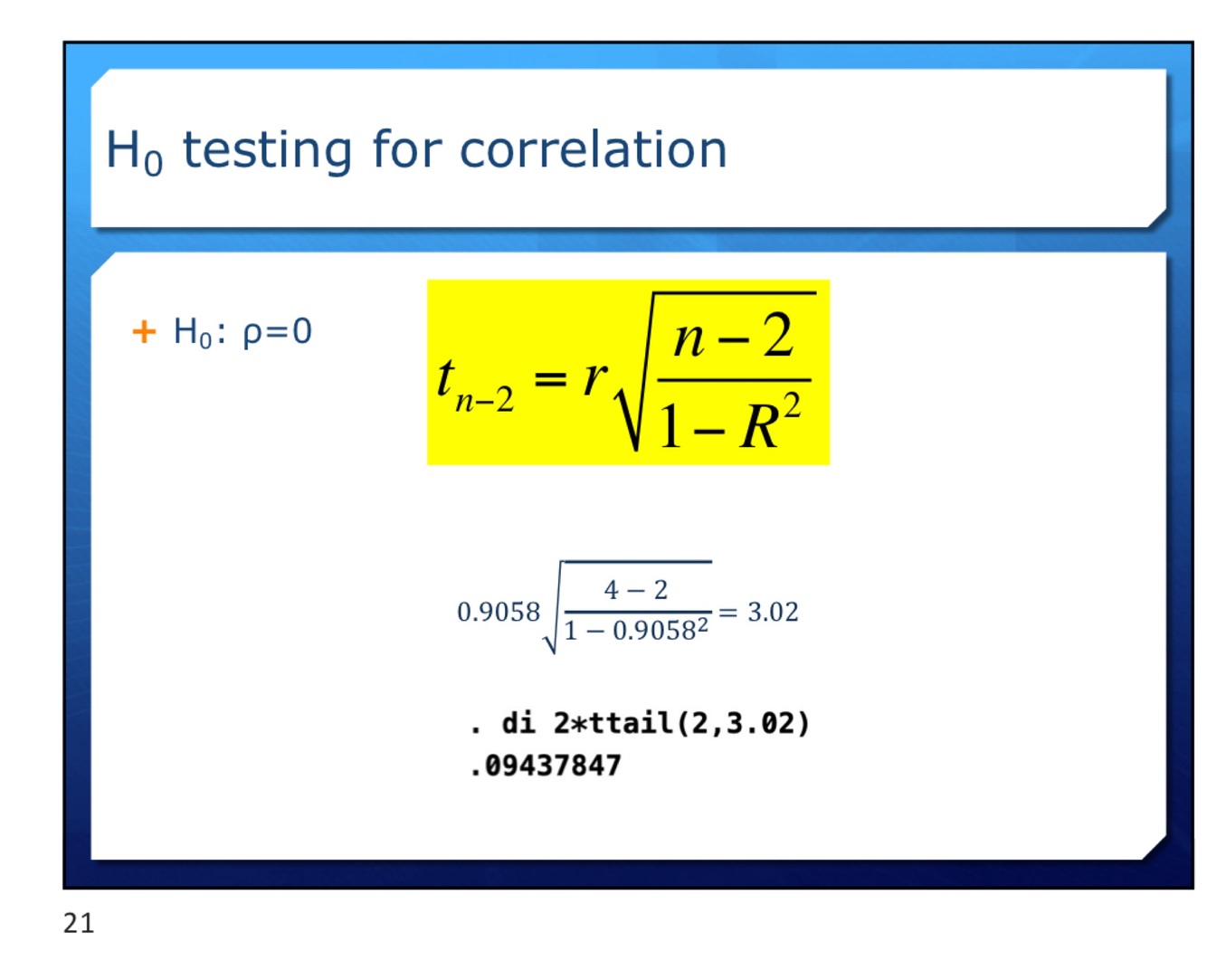 H0 testing for correlation