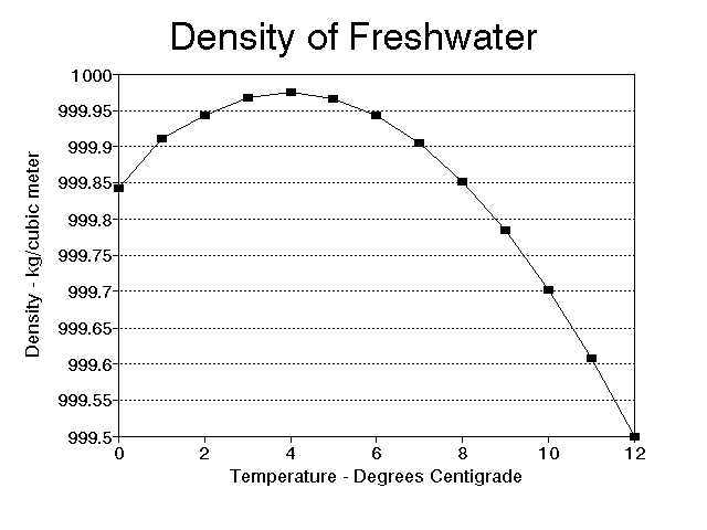 Below is the graph showing density of water from 0 to 12 degree Celsius. We know that density is an effect of changing temperature. But, density can reach its maximum value at 4 degree Celsius. Therefore, it will not be linearly correlated to the temperature.