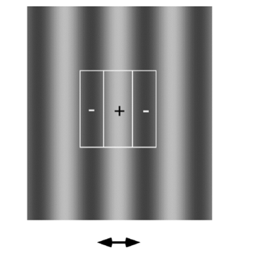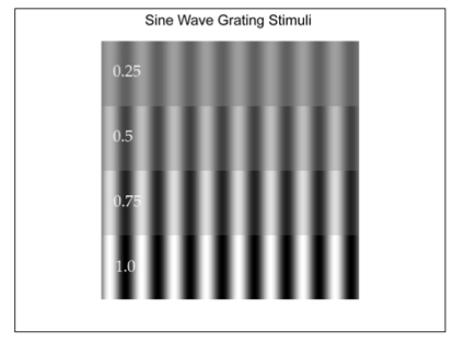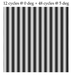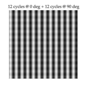 Here is a low contrast grating, tilted 90 degrees that has been added to the high contrast vertical grating. Not that the low contrast grating is very visible.