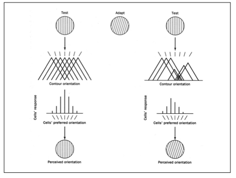 Here is how the orientation adaption effect is predicted by the multiple channel hypothesis.