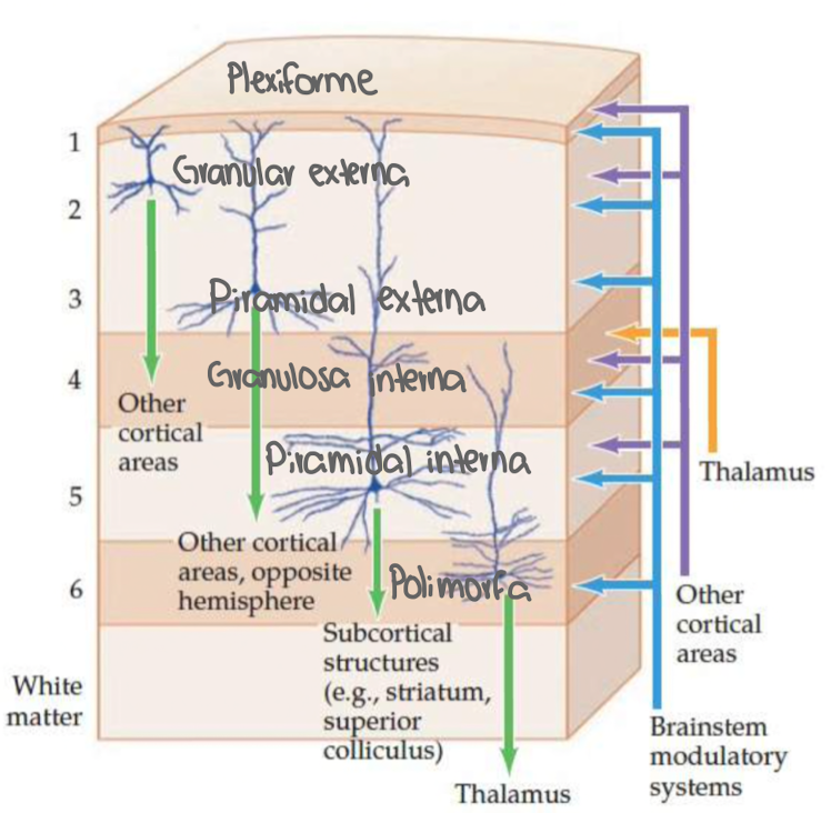 Capa V: Eferencias/Proyecciónes a regiones subcorticales.