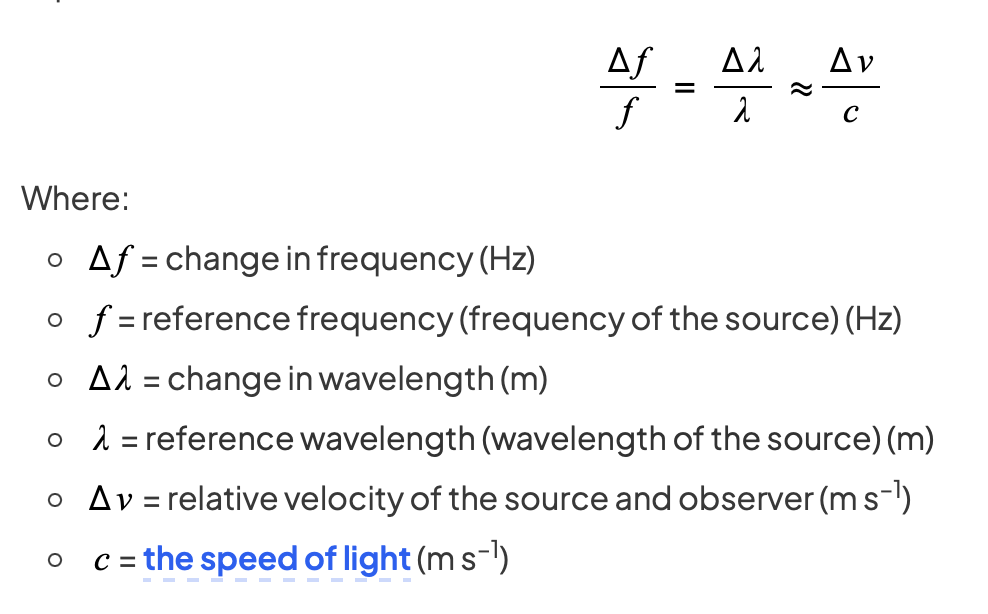 What do the components of the Doppler effect equation mean?