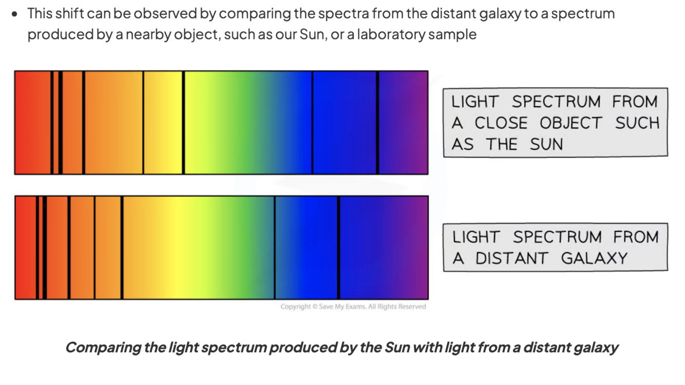 Describe and draw a diagram for how we can observe the redshift of distant galaxies