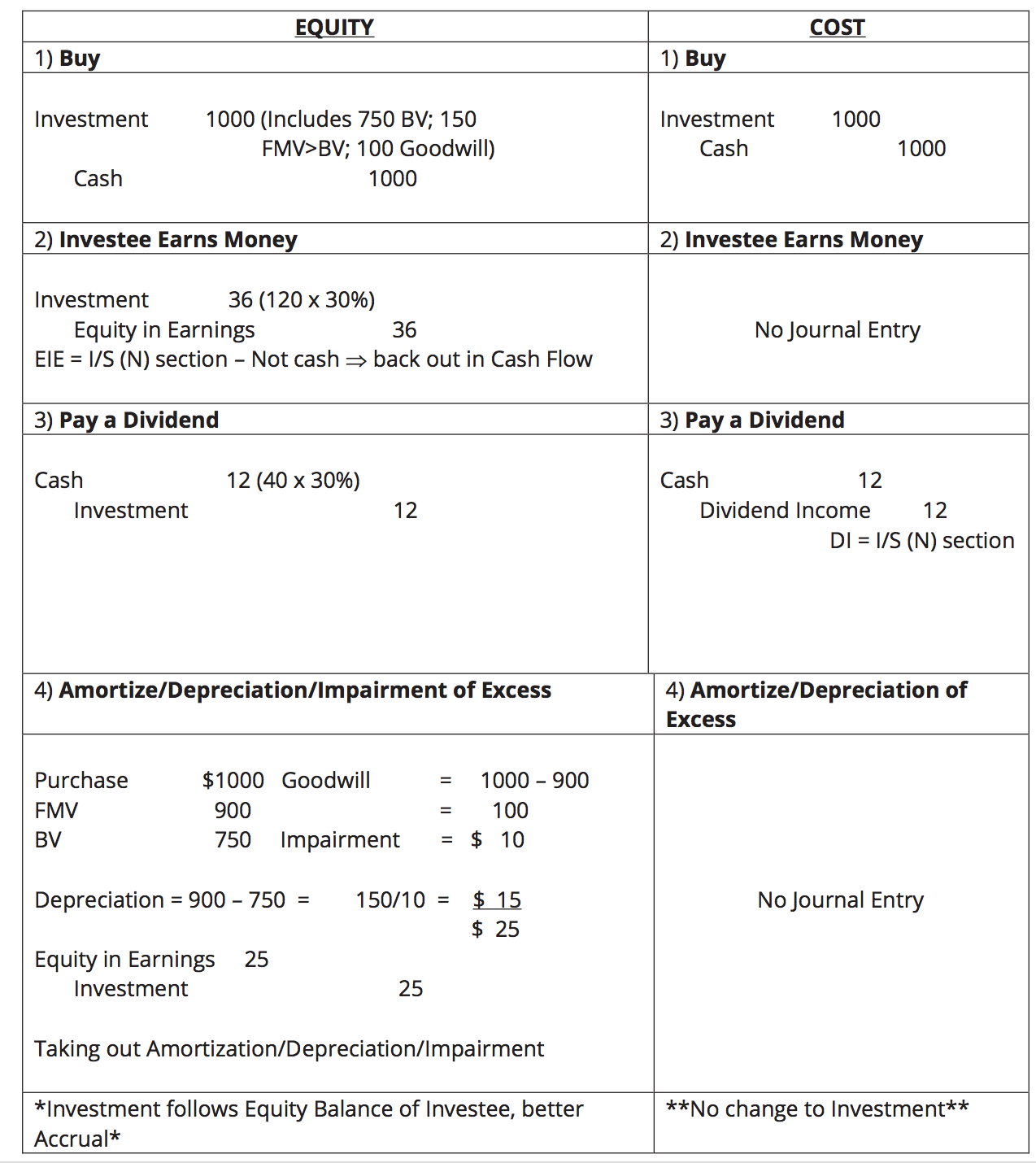 Equity vs Cost Method of Accounting