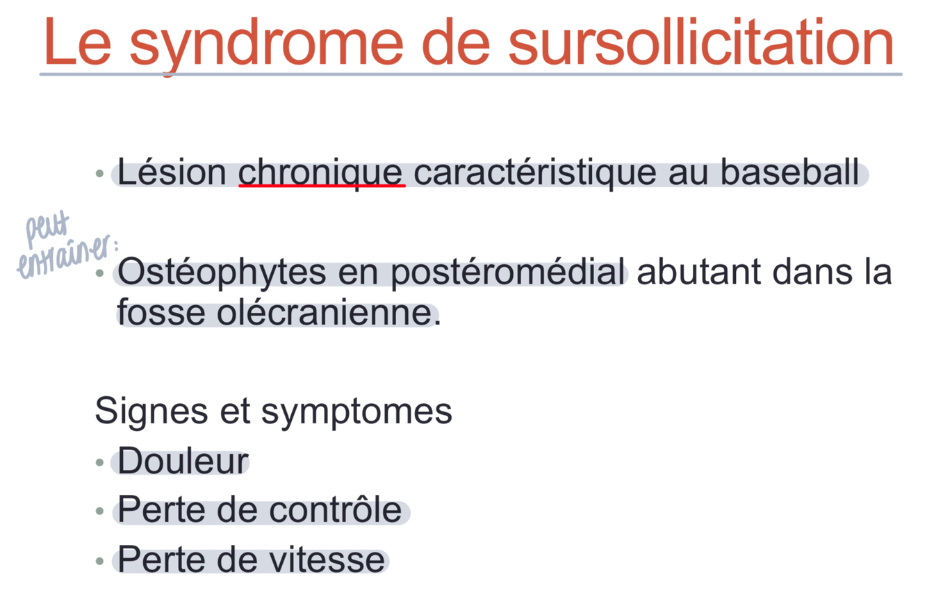 qu’est ce que le syndrome de sursollicitation (coude) et quels sont ses SS?