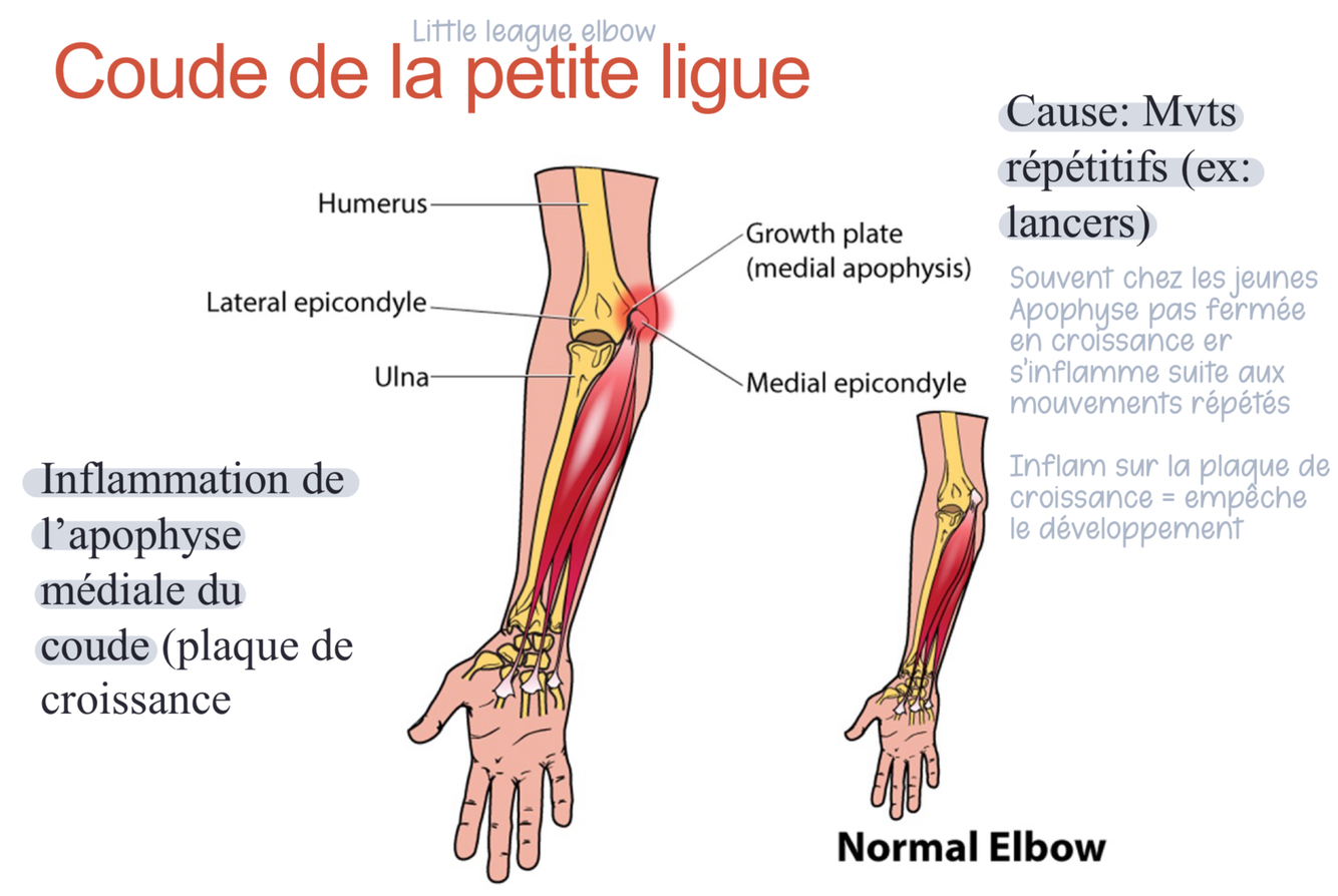 inflammation de l’apophyse médiale du coude (plaque de croissance) due aux mouvements répétitifs