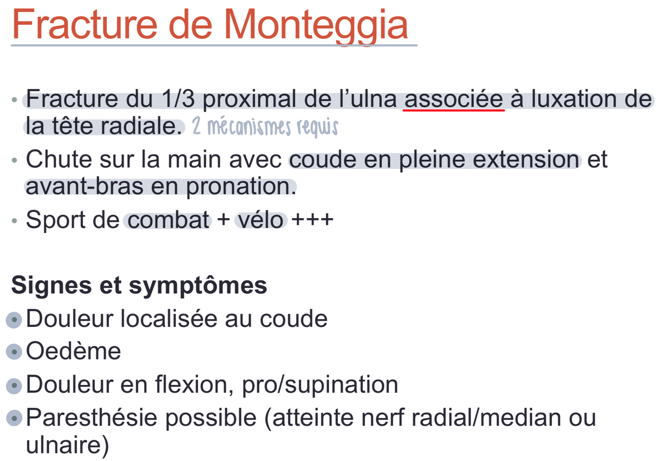 qu’est ce qu’une fx de Monteggia? quels sont ses MDB et SS?