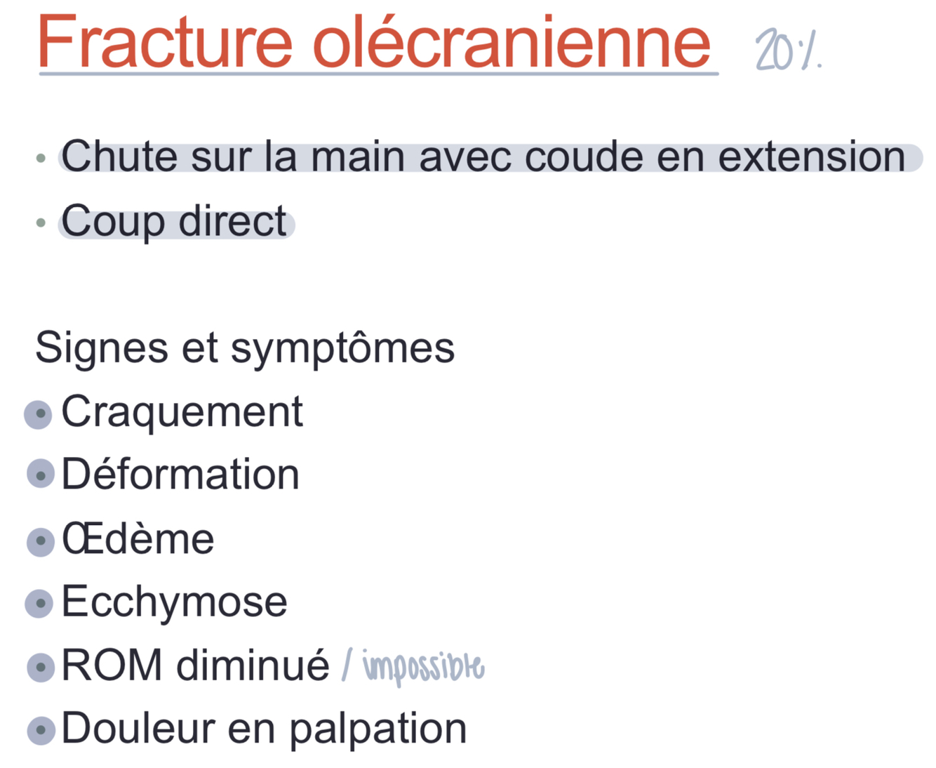 quels sont les MDB d’une fx olecranienne et ses SS?