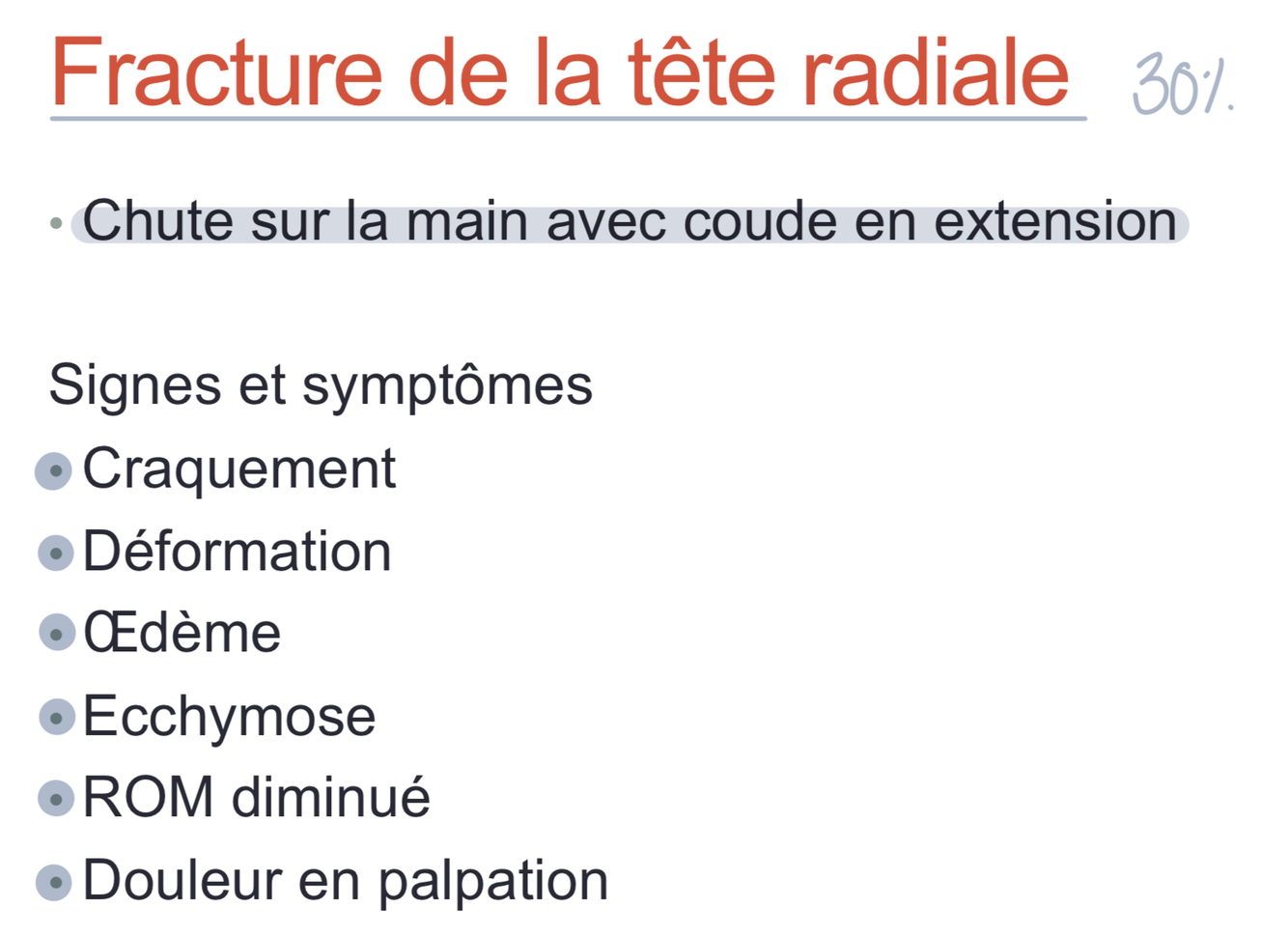 quel est le MDB d’une fx de la tête radiale et ses SS?