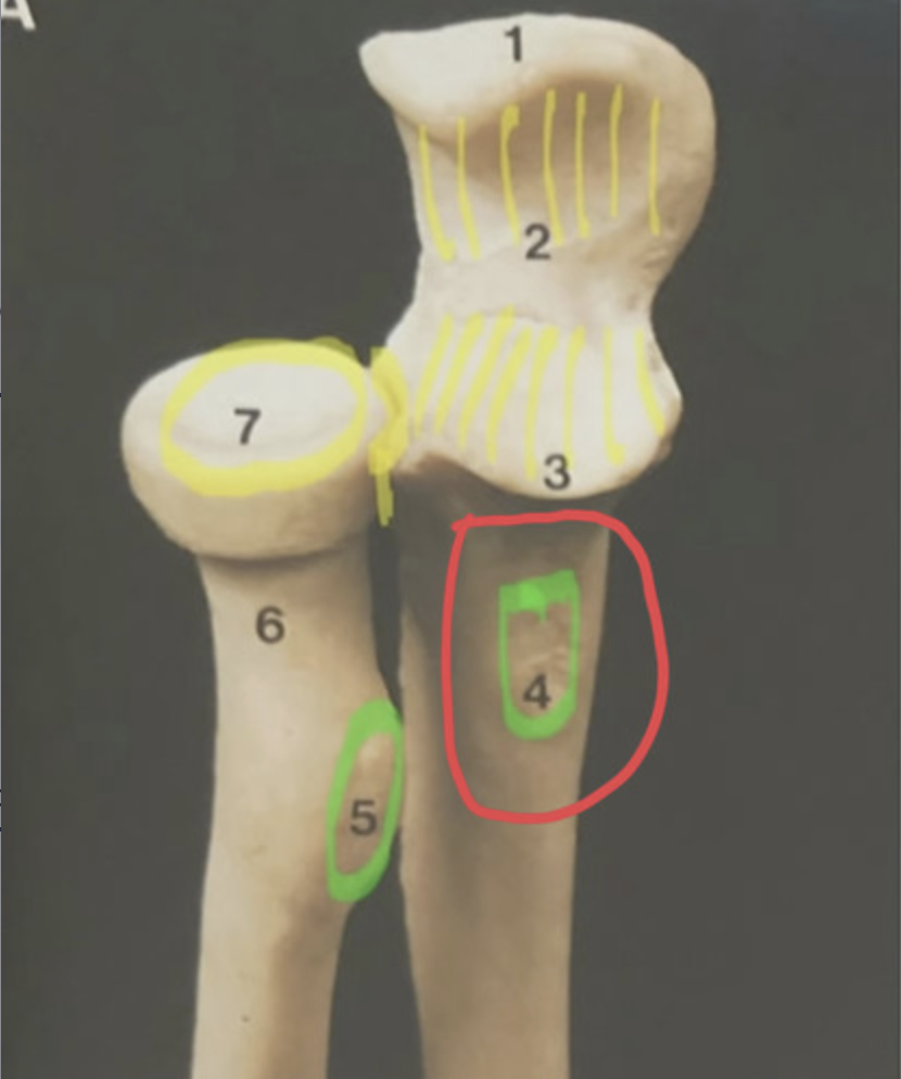 Comment s’appelle la partie de l’humérus en contact avec l’ulna? (En ventral)