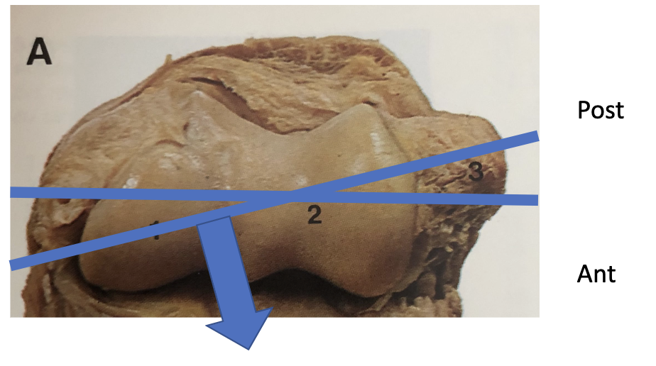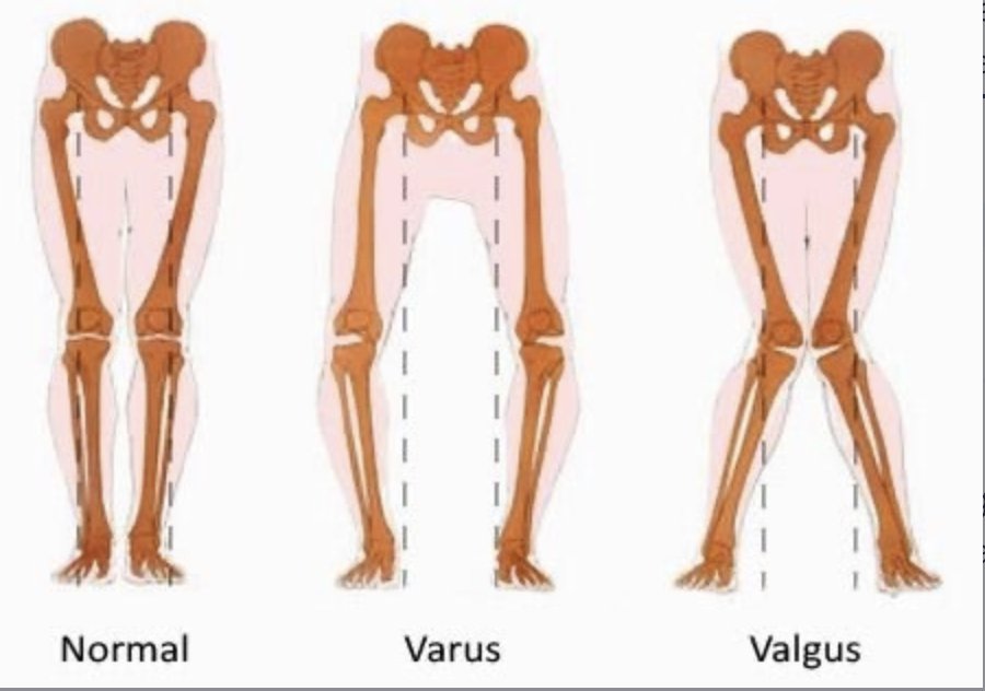 Mnémotechnique: valgus ça forme une vallée entre les fémurs -> segment distal est tourné vers l’extérieur