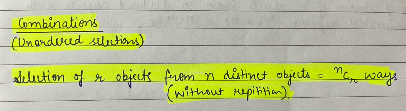 ⁿcᵣ = n! / r! (n-r)!
