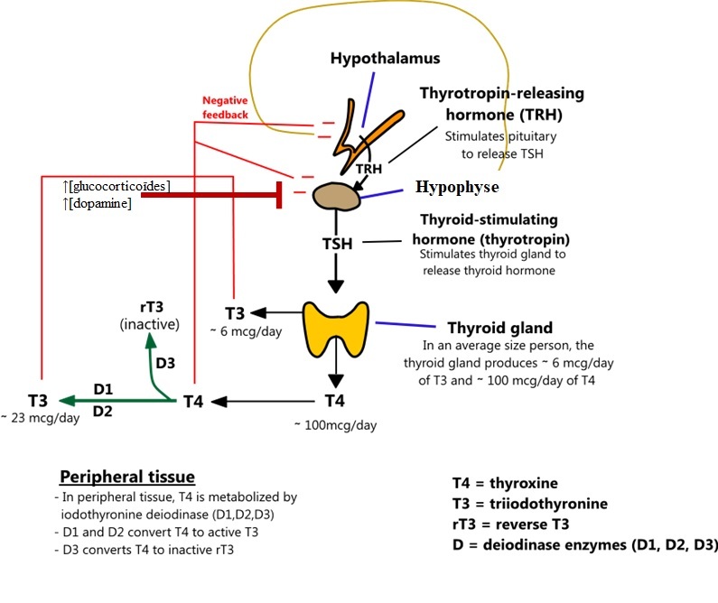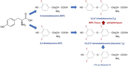 *MIT et DIT sont déiodées/recylées par iodotyrosine déiodinase.