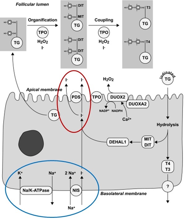 1. Transport actif d’iode sang/cellule: canal Na-I (NIS)