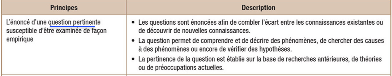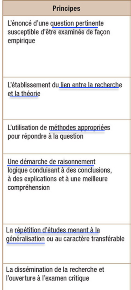 Quels sont les 6 principes de la recherche?