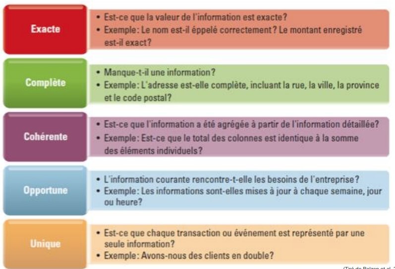 Quelles sont les 5 caractéristiques d’une information de qualité?