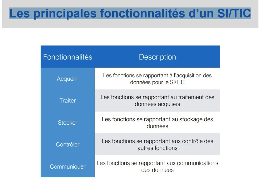 Quelles sont Les principales fonctionnalités d’un SI/TIC
