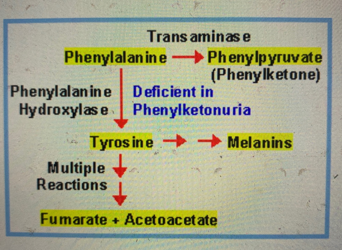 aa pas produit en quantités suffisantes dans la phenylcetonurie