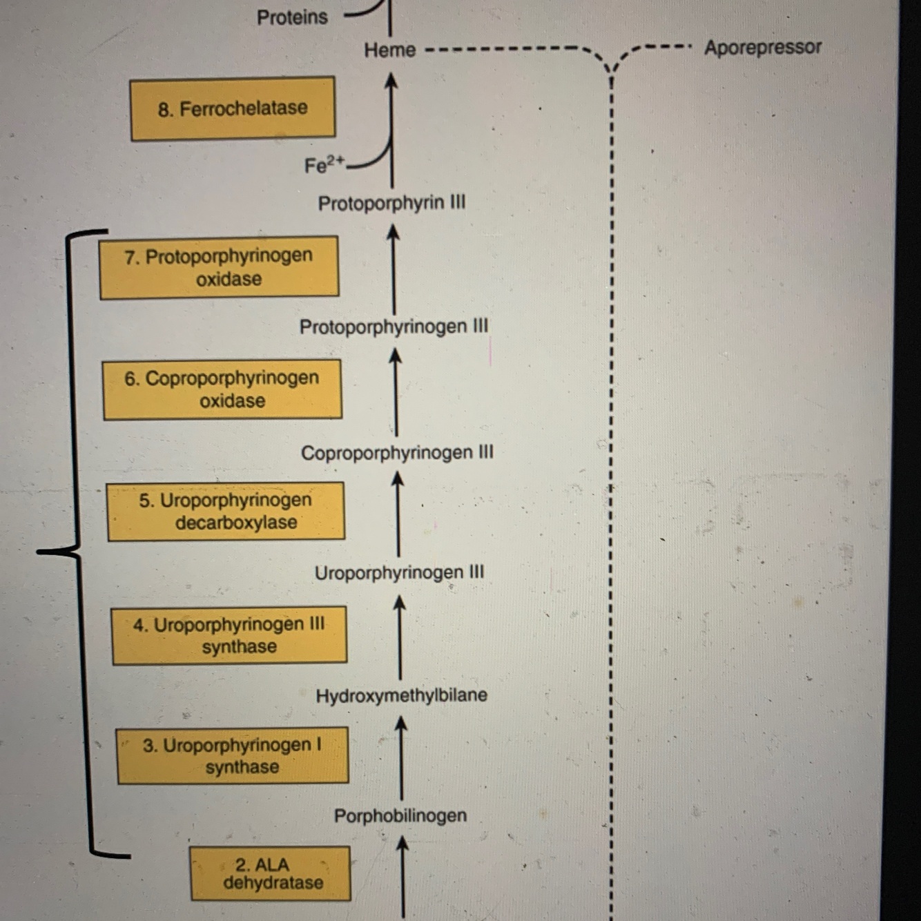 Diminution de l’activité d’une des 6 enzymes de la biosynthèse de l’hème: