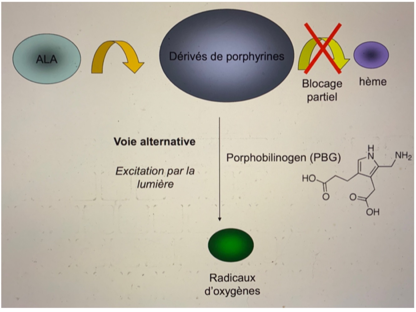 -lorsque exposées à la lumière, elles deviennent excitées et réagissent avec l’O2 = radicaux d’oxygène