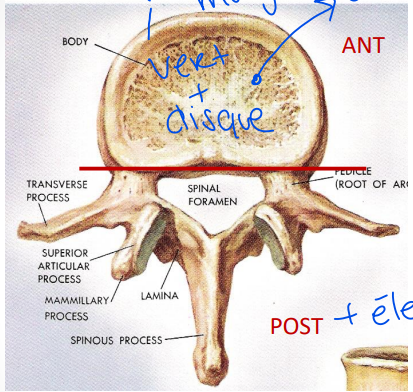 4)La vertèbre est divisé en 2 parties (ant et post), le canal vertèbral fait partie de la région antérieur de la vertèbre