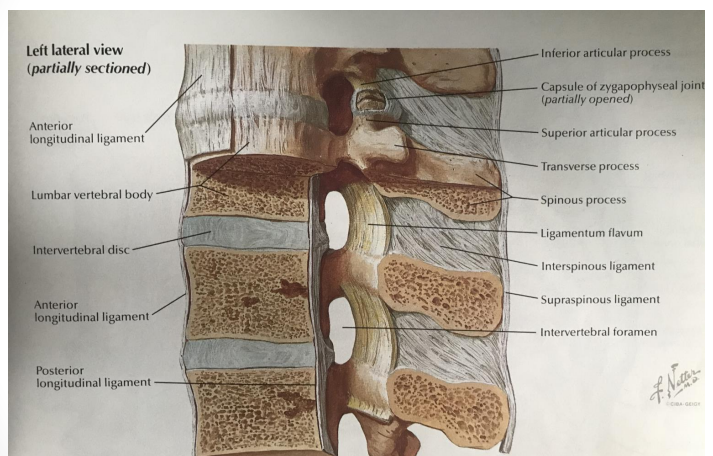 Latéral : Pédicules, lames, apophyses articulaire Lig Jaune et lig interapophysaire