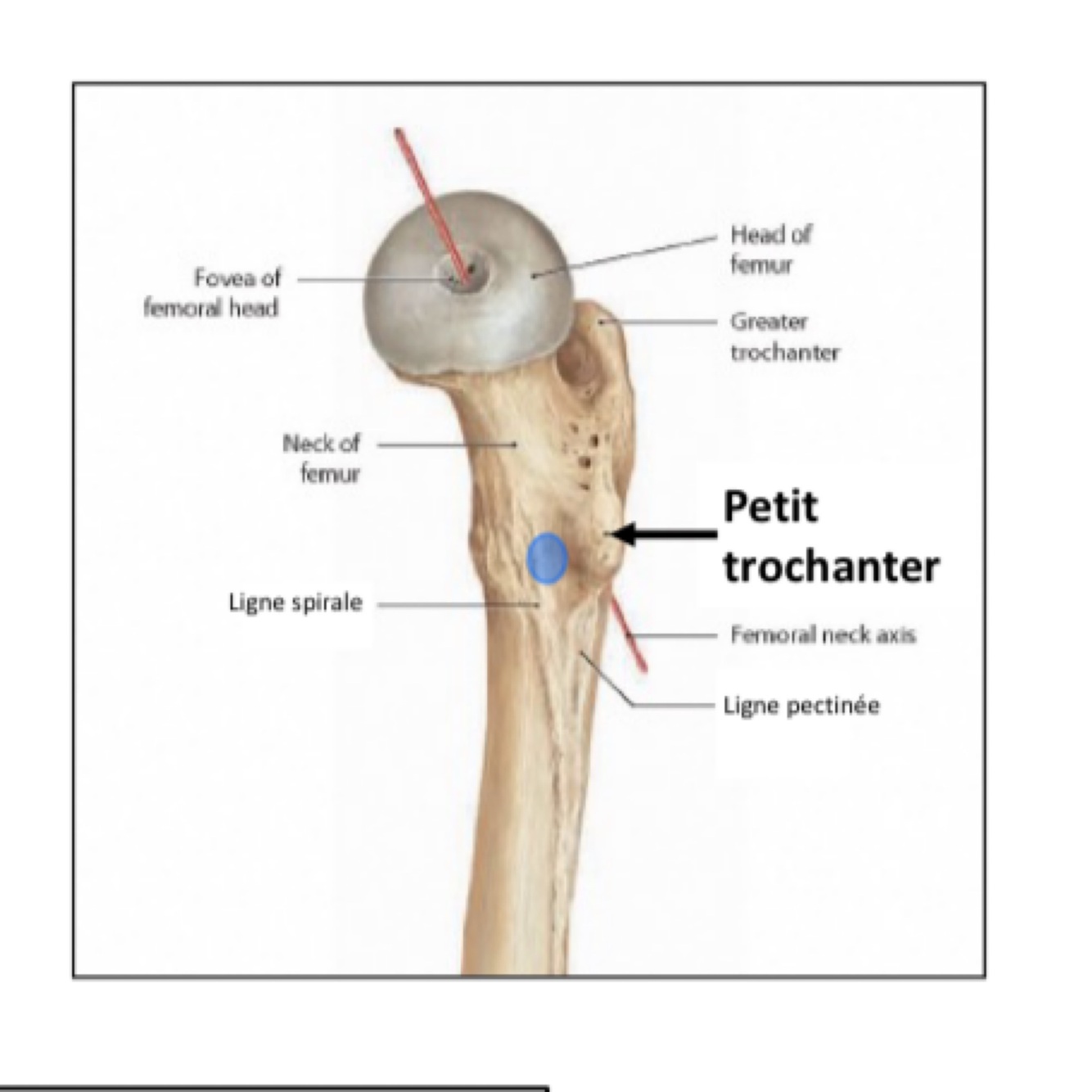 Sur le petit trochanter: on cherche ce qui s’insère sur les reliefs suivants