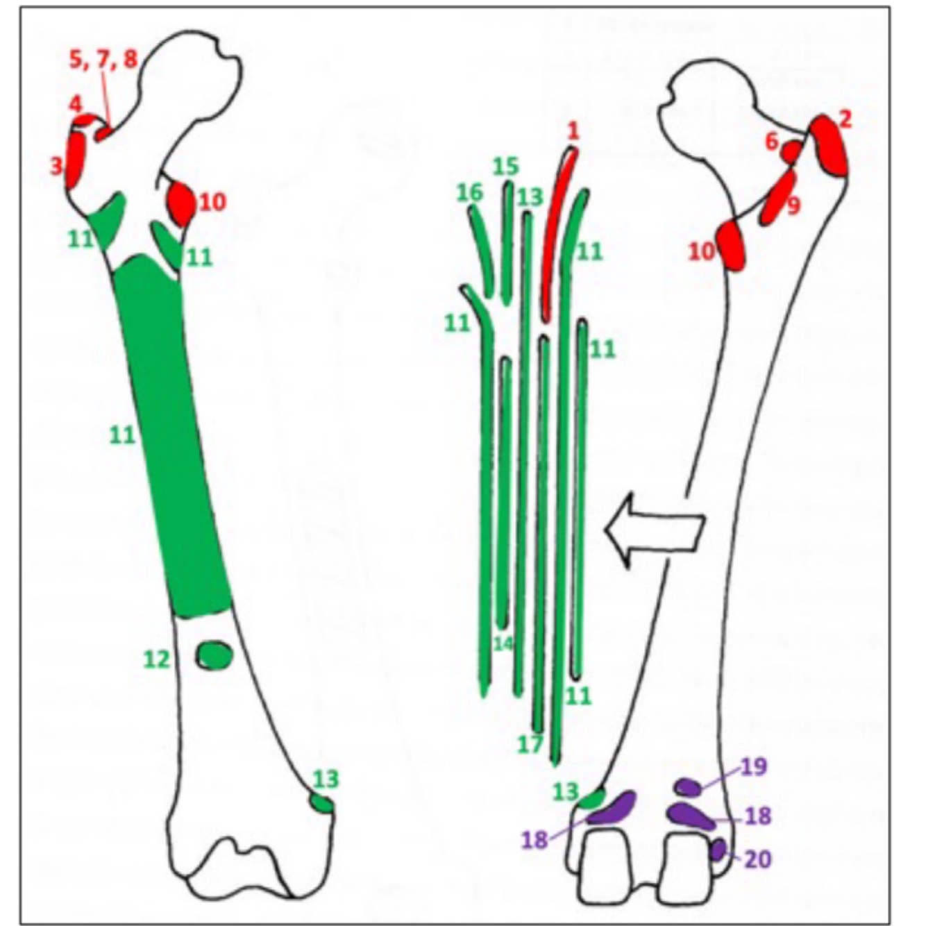 Quels structures possèdent des points d ossification complémentaires pour le femur